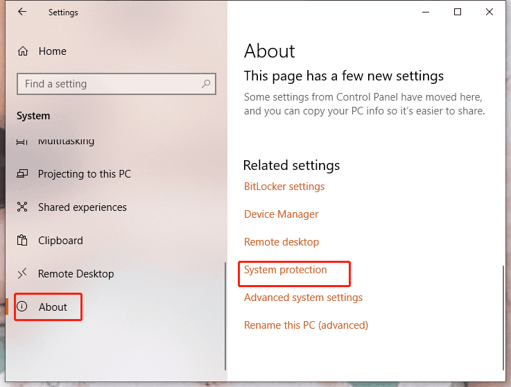 Step 1. Simply navigate to the Settings of your PC and click on System. In the System>About window, choose System protection.