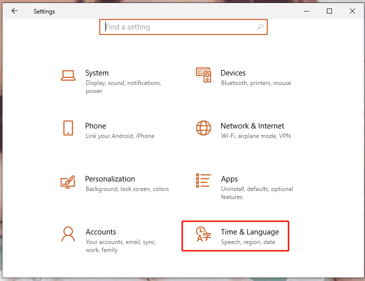 Step 2. Navigate to Time & Language.