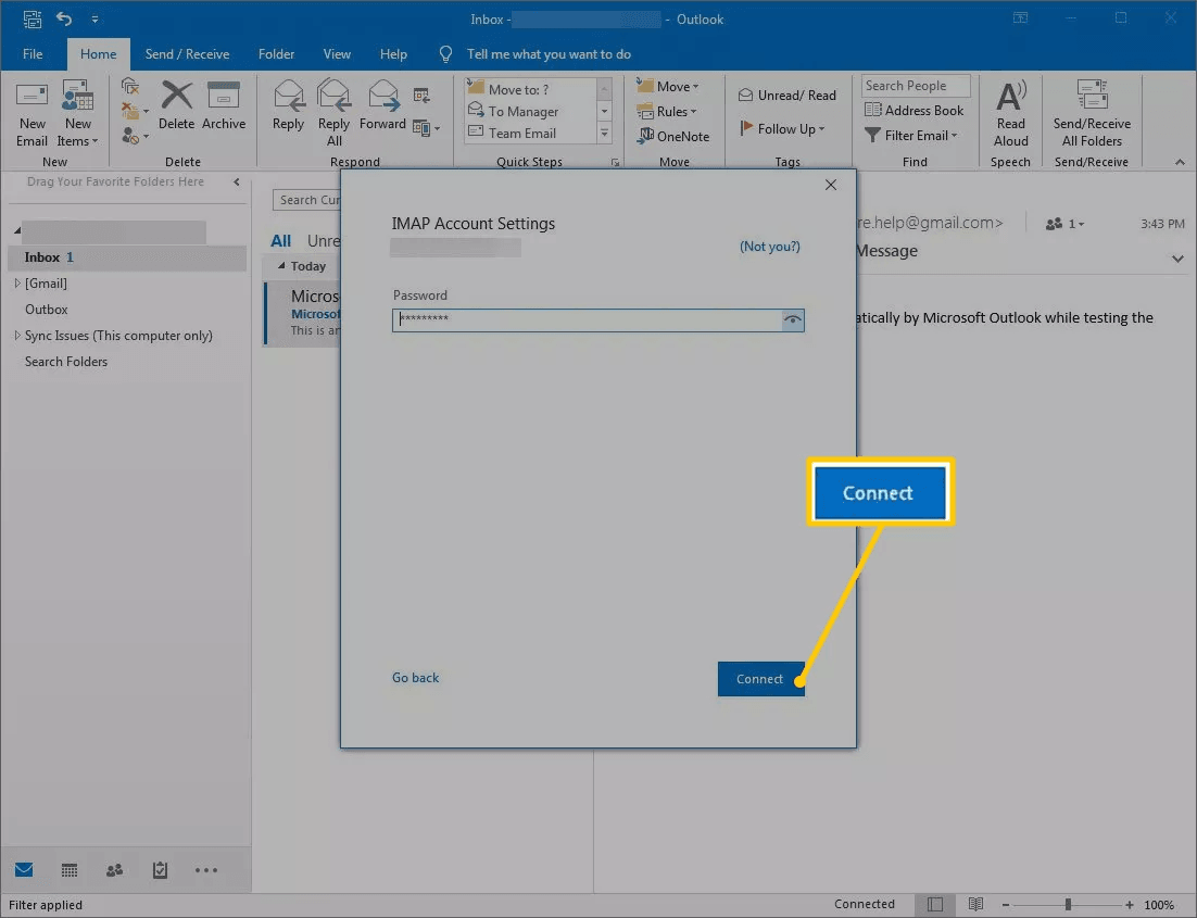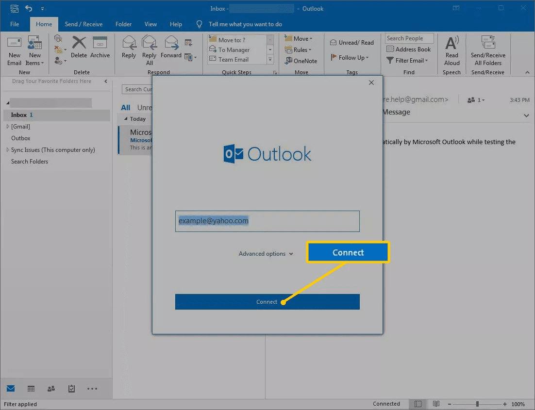 Step 5. Click on Connect to proceed. This will add Yahoo Mail to Outlook.