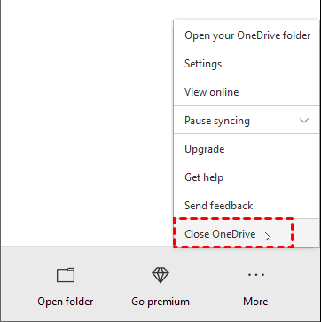 - Right-click the OneDrive icon in the taskbar and select Close OneDrive from the pop-up window.