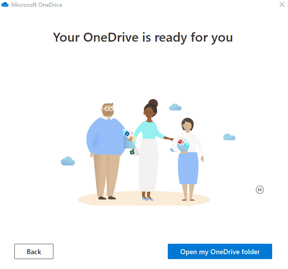 - When you see “Your OneDrive is ready for you”, click Open my OneDrive folder.