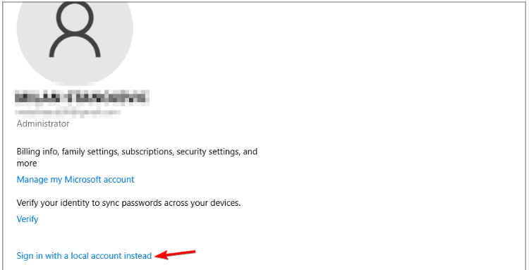 - If you’re already logged in with your Microsoft Account (and you probably are), click on Sign in with a local account instead.