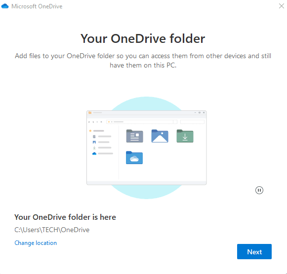 - Configure your OneDrive folder location. You can accept the default location or change it to a new one.