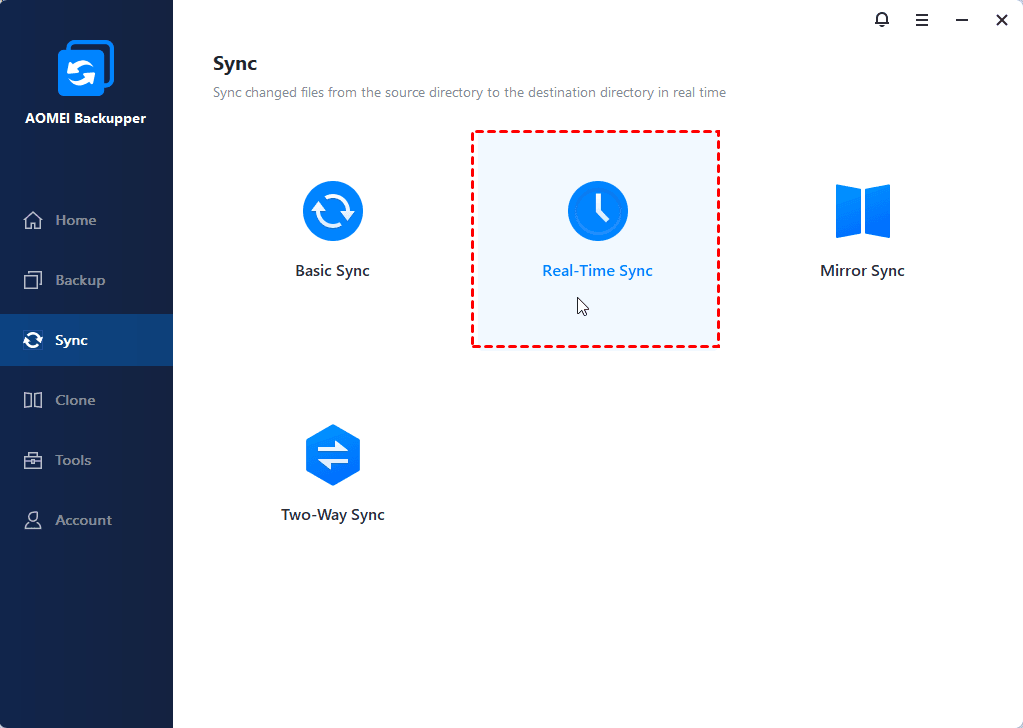 - Multiple sync methods: It offers users 4 sync methods, namely, Basic Sync, Real-Time Sync, Mirror Sync, and Two-Way Sync, and the previous 3 sync methods are based on one-way file sync with different focuses.