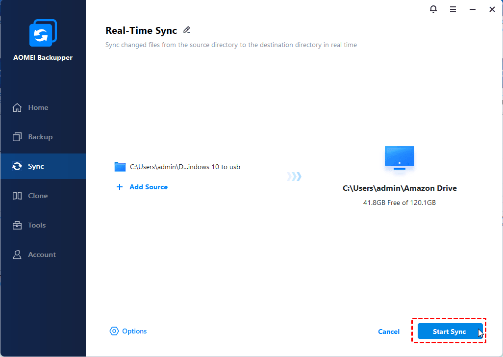 Don't worry about Amazon cloud drive not syncing problem, just follow the above solution to fix easily. Moreover, you are capable of syncing files to Amazon Drive automatically with the help of AOMEI Backupper Professional.