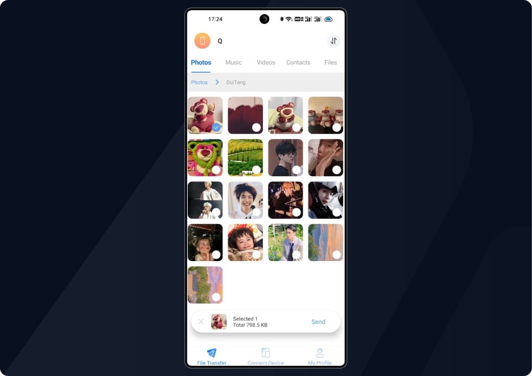 Effectively transfer files from Android phone to iOS devices like iPhone, iPad, iPod Touch or another Android phone in a quite simple user-interface.