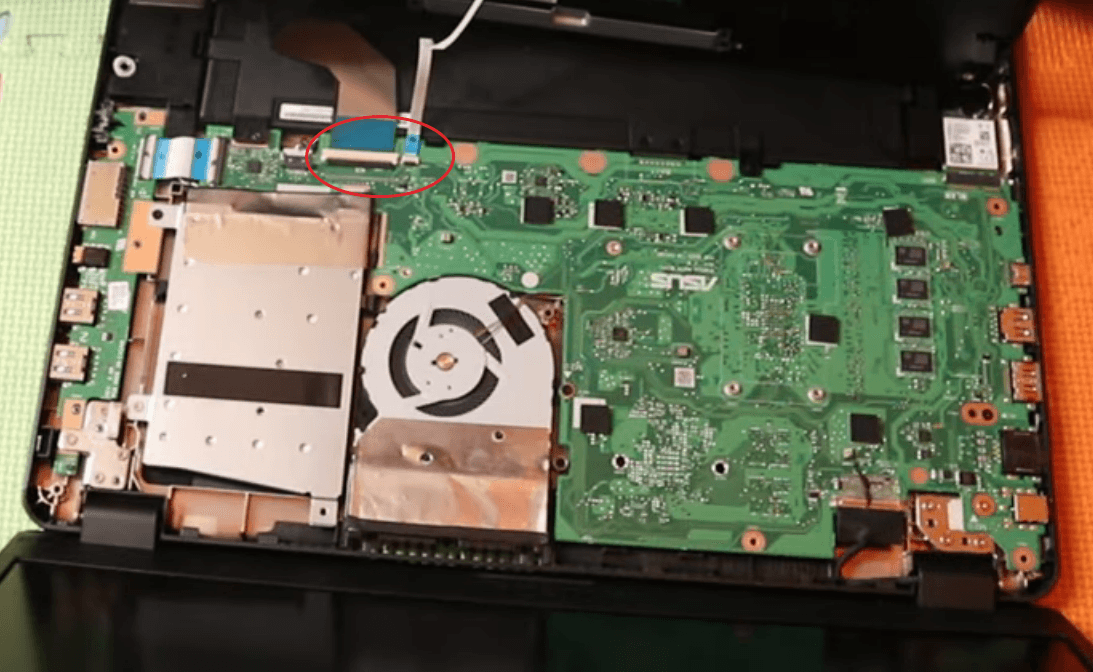 Step 1: Loosen the screws on the back cover and use a screwdriver to open it. Disconnect the power cord and the connection cable between the touchpad & keyboard and the motherboard.