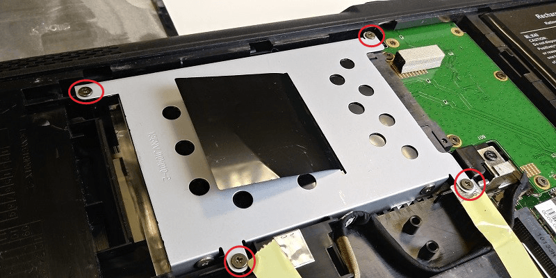 Step 2: Locate the hard drive at the top right. Remove the 4 screws holding it in place.