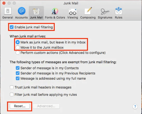 In Outlook, the Junk Email folder stores suspected spam messages instead of blocking them. This folder, with the Junk Email Filter, is saved on the Server and can be accessed from any device.
