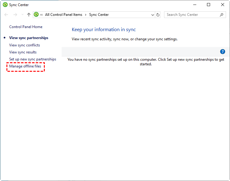Note: You can only sync files on the network drive to local using Sync Center. If you want to sync local folders to network or other locations (external drive, cloud, etc.), please turn to method 1.