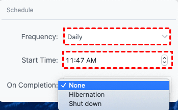 Automatic sync: The program offers 5 schedule modes to help you sync folders automatically, including Once, Hourly, Daily, Weekly and Monthly.