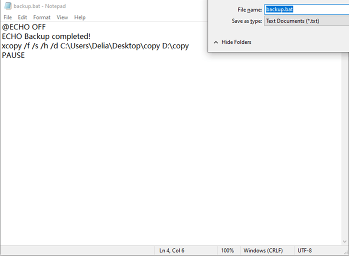 Way 1: Create batch file to backup files in Windows 10 step by step