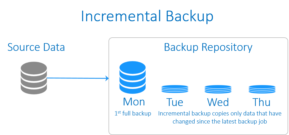 Incremental backup is the default backup method, which only backup changed files since the last backup. This saves much backup time and disk space.