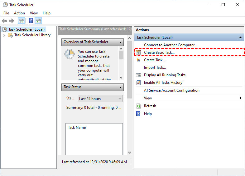 Now that you’ve created a backup batch file, how to automate it? Task Scheduler is the answer.