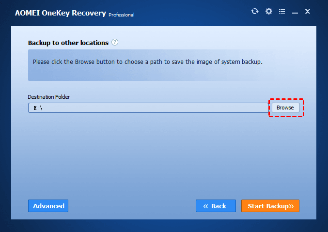 Step 3. In the Backup to Other Locations window, click Browse and select a backup destination to store the system image.