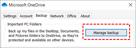 Step 3. Click Backup from the tabs at the top of the OneDrive settings window.