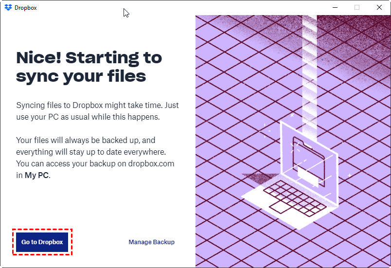 Step 1. Download the Dropbox desktop app by clicking the download link and launching the DropboxInstaller.exe.