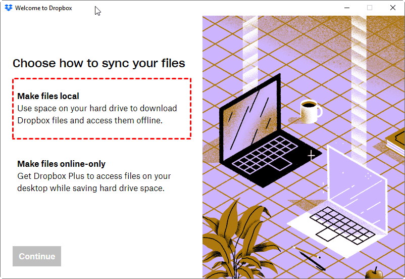 Step 5. In the Choose how to sync your files window, select Make files local and then click Continue with Basic. Or, choose Make files online-only and click Save space with Plus.