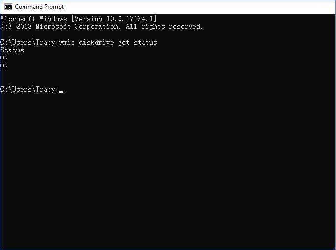 2: Enter wmic diskdrive get status. Wait for it to process and show status: