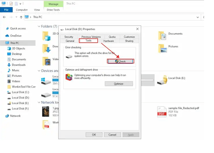 If you're still facing the issue, it could indicate unveiled issues on your hard drive device. Performing a scan and repair using Disk Check may be the solution to repair a hard drive. Follow the steps below to try this method effectively: