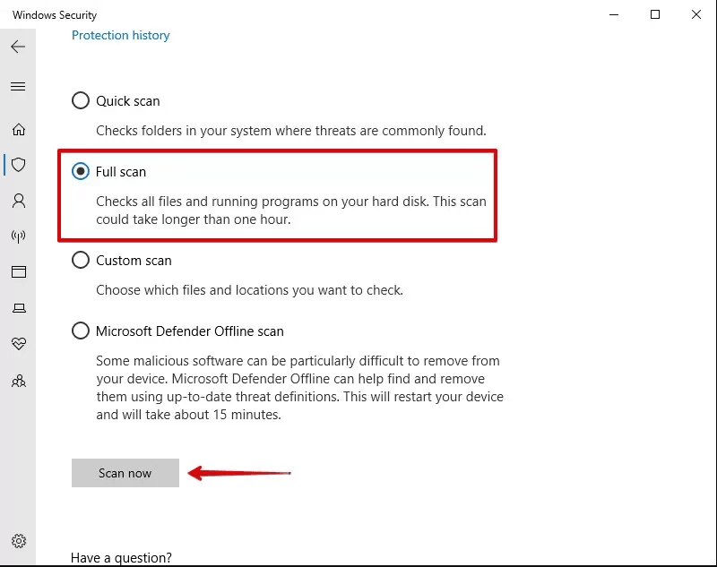2. Follow the instruction: Virus & threat protection >> Scan options.