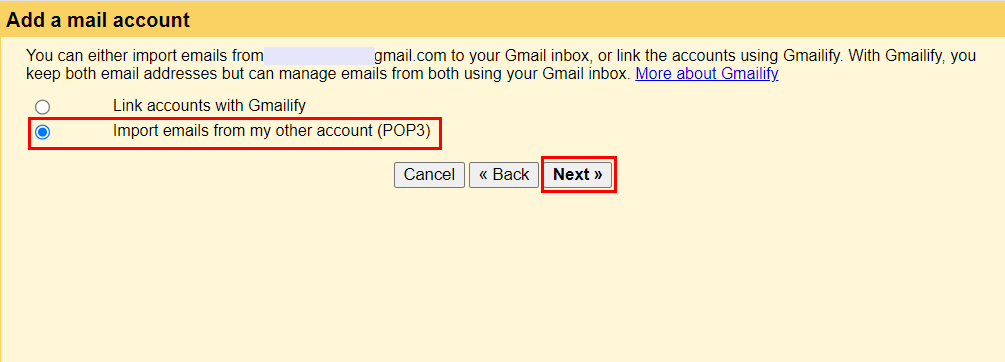 Step 2. Provide the email address from which you wish to transfer emails, then click Next. Then, opt for Import emails from my other account (POP3) and advance by clicking Next.