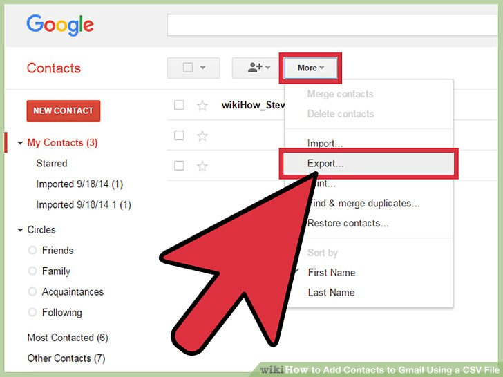 Step 1. Sign in to your Gmail account. And Click on Contacts in the left-hand menu, then choose More button and select Export from the drop-down menu.