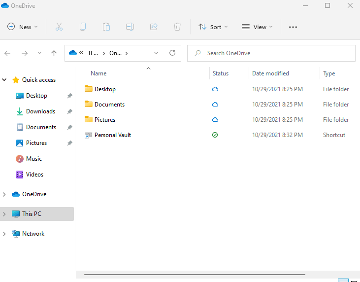 - When you open this page, you can drag and drop or copy and paste the files/folders on your laptop that you want to back up to the OneDrive folder.