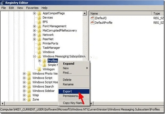 - Outlook 2010 or previous versions: HKEY_CURRENT_USER\Software\Microsoft\Windows NT\CurrentVersion\Windows Messaging Subsystem\Profiles