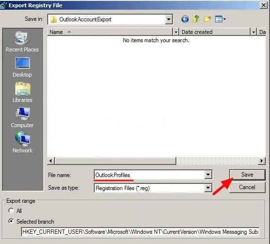 Step 4. In the Export Registry File dialog box, select a location to save the Registration Entries (.reg) file. Provide a suitable file name in the File name box and click on the Save button to create a backup of Outlook 2010 email account settings.