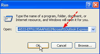 - Click Start and select Run. Right-click in the Run window and select Paste to input the folder location of your Outlook Express data. Then, click OK to open it.
