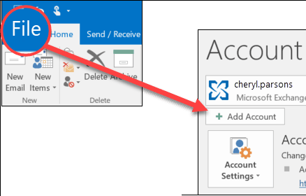 - Go to Start > Outlook > File > Add Account if you want to add a new email account.