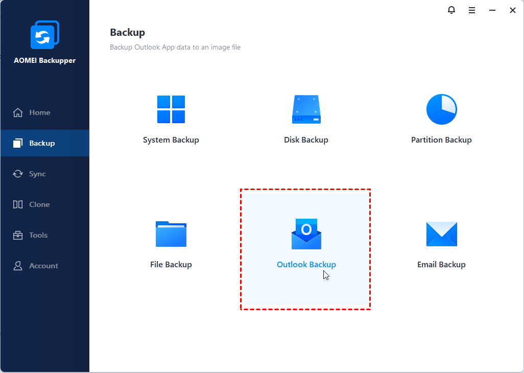 2. Start AOMEI Backupper on your PC after installing it. Then, click Backup and select Outlook Backup.