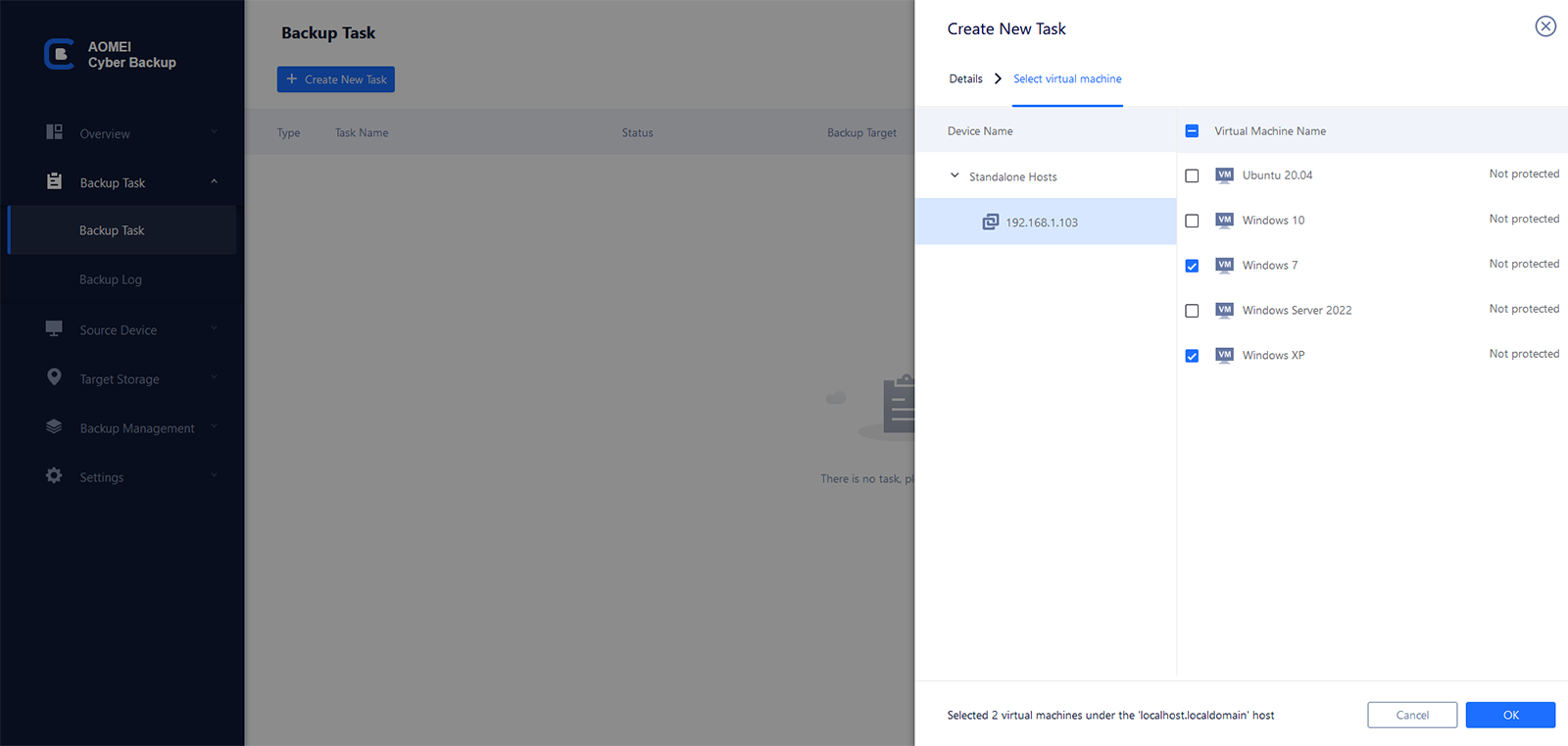 If you have a bunch of VMs that need to be backed up, the easiest way to perform the backup task is to use AOMEI Cyber Backup.