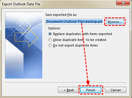 Step 8. You can use the default location or browse to choose a location where you want to save the exported file. Click Finish to start the export process to backup Yahoo Mail folders locally.