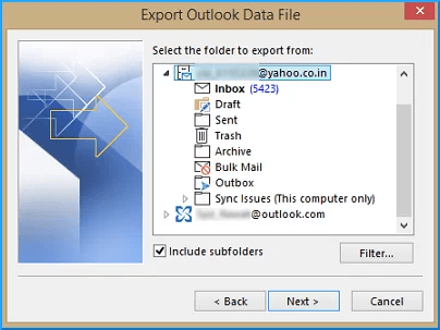 Step 7. Choose the specific Yahoo folders you wish to export, and make sure to tick the Include subfolders checkbox. Click Next.