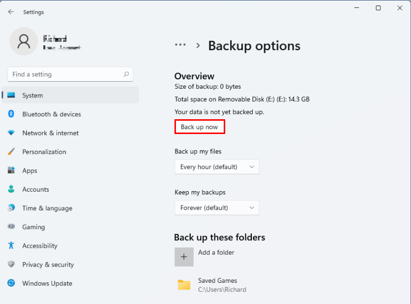 Solution 1: Backup system via Windows 11 Backup and Restore