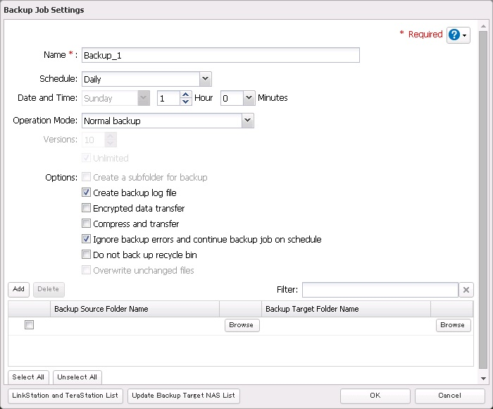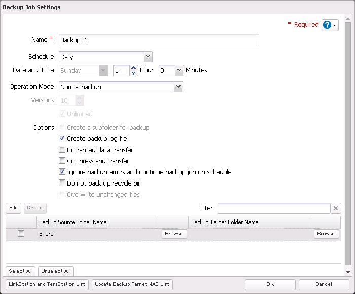 Step 9. Choose the target for the backup. It can be a local folder or a folder located on another TeraStation or LinkStation device. In this example, we will use a USB drive connected to the local TeraStation.