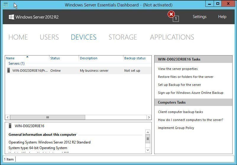 1. Launch Windows Server Essentials Dashboard and click DEVICES.