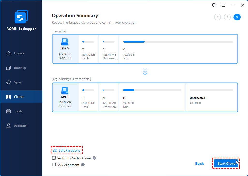 Some users may want to clone a larger HDD to a smaller SSD. In any situation, you’ll need a reliable cloning tool that can manage both the cloning and partition resizing tasks.