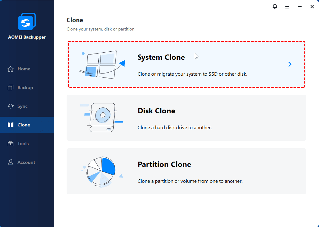 - All-in-one cloning solutions: It supports "Disk Clone", "System Clone" and "Partition Clone". You can use it to clone both basic disk and dynamic disk, but the dynamic disk clone is only supported in the latter two features.