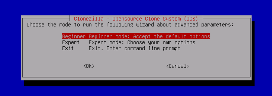 Note: By default, Clonezilla will clone the “same” size of source disk to target disk. Therefore, there would be unallocated space left on the target disk if you are cloning a smaller drive to a larger drive. To make full use of the target disk size, you can enter Expert mode and choose option -k1.