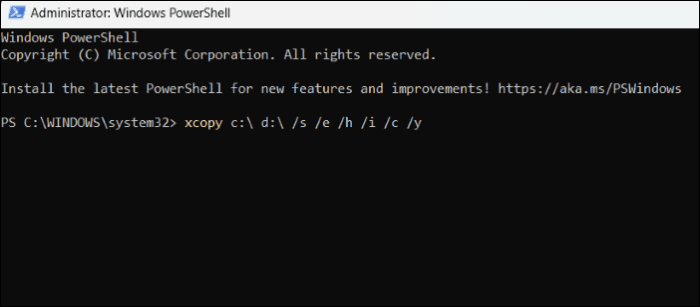 Except for Command Prompt, Microsoft offers a more advanced and powerful command-line shell and scripting language, PowerShell. Actually, the above 3 commands (AOMEI Backupper.exe, xcopy and Robocopy) can also be performed in PowerShell.
