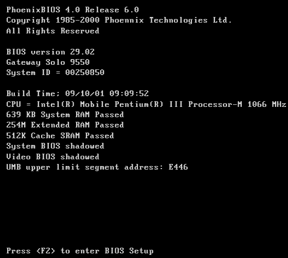 Step 2. During the start process, you may see words like "press F2 to enter BIOS". Press the prompted key to continue.