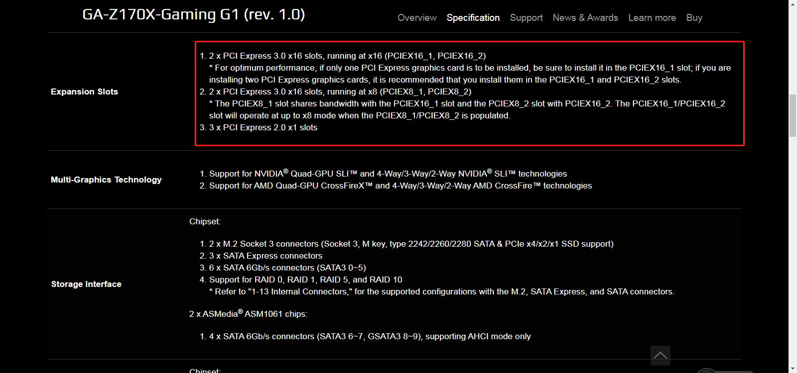 Before cloning PCIe SSD, make sure the motherboard has the PCIe slot. You could turn to the manufacturer for help or search the model on Google, then it will show the specifications of your motherboard whether it supports PCIe slot or not. Like the below picture.
