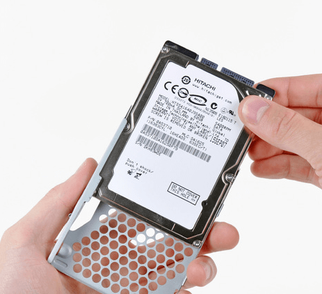 2. Take out the hard drive from the steel cage, insert the new drive into it, and then use the screw to hold the drive.