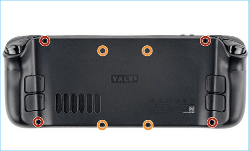 Step 5. Reconnect and secure the back plate by placing it on top of the Steam Deck and screwing it in place. Double-check to ensure everything is properly aligned and secured.