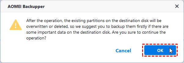 Click “OK” to continue this operation if you have already created a backup for your important data. If not, click "Cancel" and backup files to external hard drive first.