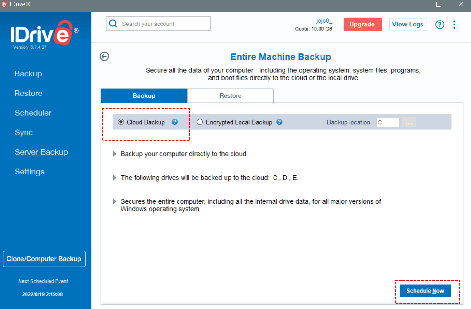 Now, follow the specific steps to backup multiple computers to IDrive: