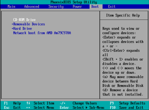 3. Set the bootable media you just created as the first boot device and press F10 to save the changes.